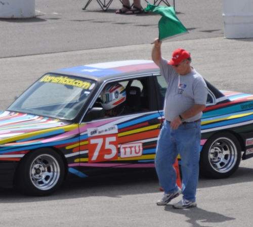 Lit the engine, turned on the fan and eased up to the line. Starter didn't chat with me (my visor was down) as I stared down the first section of the course. Quick chicane, 2nd entry slalom, setup for parabolic right 180. I repeated that over and over until the green waived in my peripheral and I came quickly off the clutch. Quick-ish shift (save the trans!) in mid chicane and get my eyes up. The run went pretty well, I laid up just a bit in two spots but really nailed the finish and was rewarded with Fair's "THEY DIDNT GET THE TIME...THE TIMERS ARE BONKED....GET BACK IN LINE!!". I was still pretty calm and cut quickly back towards the start line. Fair dumped the accumulated air pressure and I went back to the line. Fair's quick final words "Looked like a GREAT run, do it again" and the radio went silent. We had agreed no talking during the runs.