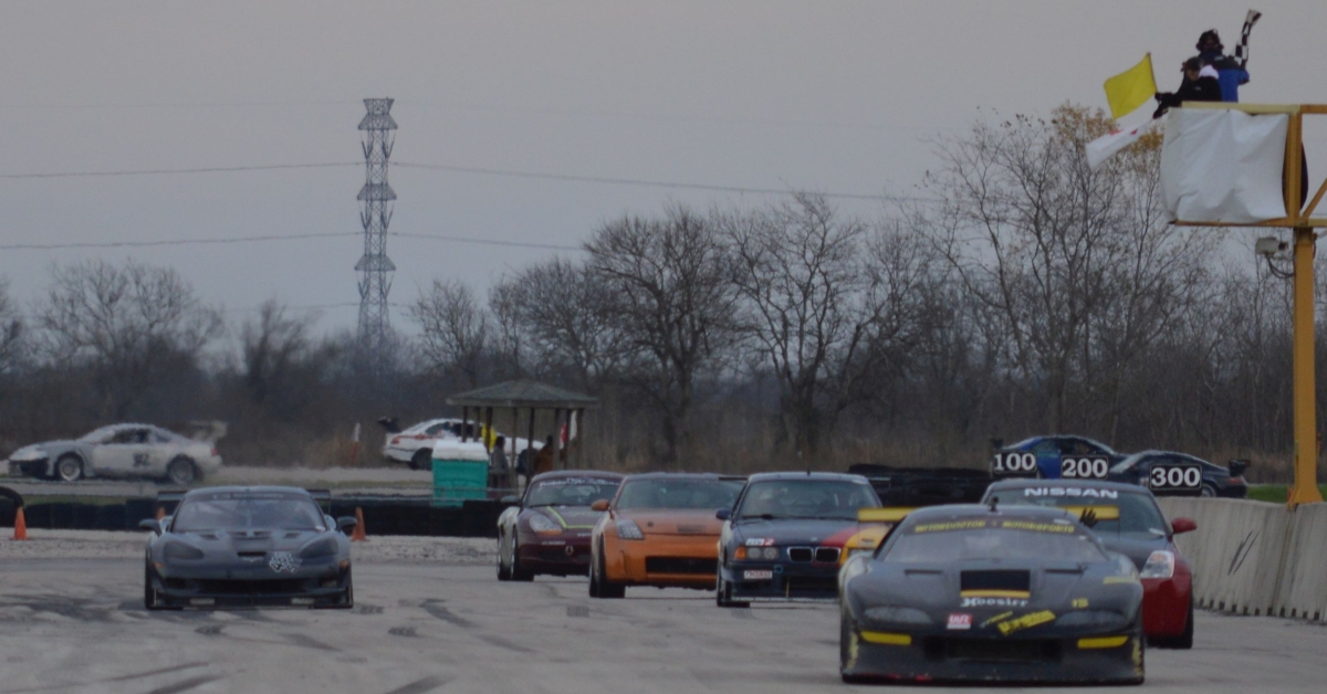 We launch and I work hard to put a ton of heat into the brakes and tires on the pace lap. I bring us slow around the carousel and slowly raise speed to where I'm dead in the middle of the power in 2nd as the moment steals all of my consciousness. My left hand holds the 9 o'clock position on the wheel, my right hand is open with fingers wide as the palm is almost touching the ball of the shifter. My left foot still dragging the brakes as my right foot is balancing the throttle position to the corresponding power needed to slightly overcome the brakes as my eyes are intently focused on the starter. I don't hear Scratcher, and I don't hear the car next to me with the loud exhaust dumping right at me. I don't feel the shoulder straps pulled so tight that my HANS is shoved into my shoulders meaning that Scratcher and I are one and any impact or nuance no matter how severe or minute is transmitted to my body directly with no filter or masking. I don't smell, I don't feel the heat and there are only two things that occupy my brain at this instant. First, the focal point on the starter's right elbow and second the gentle command to slow down my heart rate. It isn't fast by any means...in fact it probably was only a few beats above my resting heart rate, but in this fleeting moment I need to be relaxed and while my physiology is in a loop issuing and reissuing a relax command...his elbow twitches. Before his wrist has even moved vertically, the brakes are released, the loud pedal is matted and my backside goes to full sensitivity for the potential wheelspin that does not occur meaning my severe tire warming antics were successful. Result: Pack is left behind.