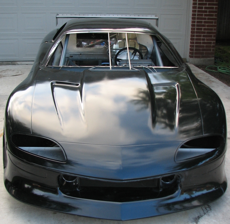 Spent some time today mocking up the body. I still need to rivet the taillight panel to the bumper and the two rear quarters to the hatch, but I got the latches adjusted close and snapped some pics. Still need to clean the lexan really well and put the front and rear windows in. Sure looks mean though, even though I have the coil-overs adjusted WAY high.