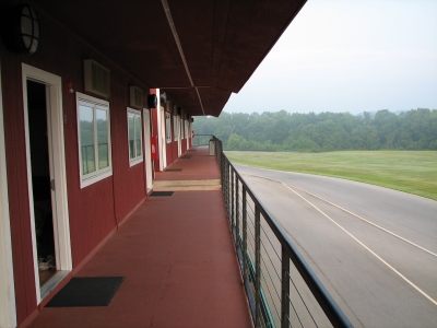 Above: Looking left and then right out of our front door. That is the pit entrance on the left and then on the right you can see the track and pit road. Awesome. The room had two full-size beds, a flatscreen tv, the ac blew ice cubes and the water was hot. Very very nice. If you go to VIR look into staying there and you can rent the garage below your room and not have to deal with all the rocks and gravel.